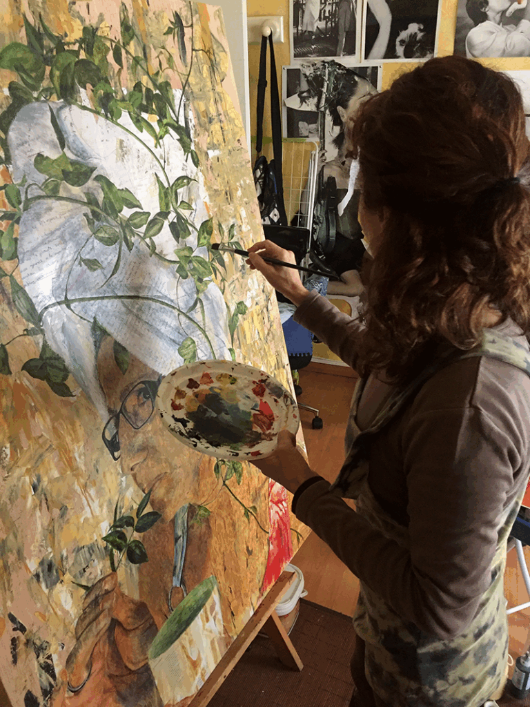 I mainly work in oil on wood because it feels more secure on a rigid surface. I really like creating textures, and can’t imagine a composition in which at least a bit of paint doesn’t stand proud of the support I’m working on. Also, I use acrylic and mixed media, but that’s not my usual approach.