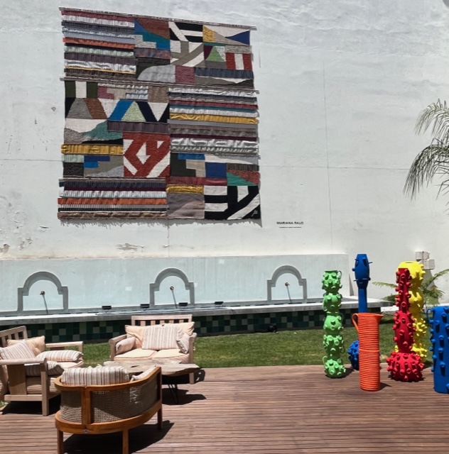 Behind Terrakota’s vases, hung on a vast wall overlooking the patio, a stunning, huge rug adorned the entire area. We are talking about Mariana Ralo‘s artwork. We couldn’t meet her, but just being next to her art piece gave us a closer touch of how her work can give a sense of belonging through beauty, as she declares.