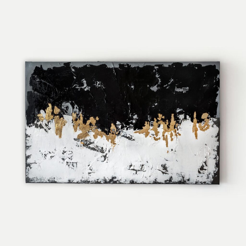 Anne-Laurence Garceau, a self-taught artist based in Québec, radiates elegance and spirituality in her work. She creates pieces rooted in the duality of black and white, minimalism, and emotional expression. Her paintings, which serve as meditative experiences, explore identity and spirit. Each brushstroke and line reflects careful thought. Since returning to painting in 2017, Garceau has built momentum, creating works from small to larger, powerful compositions.